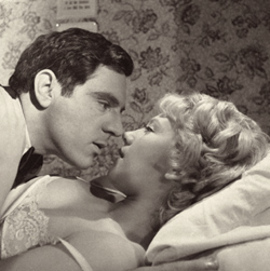 But there was a time when men of all sorts did view films, and one of those times was 1963. It was a great year for British film: Tony Richardson's Tom Jones; Lindsay Anderson's This Sporting Life; Anton Leader's Children of the Damned; Joseph Losey's The Servant and The Damned; Terrence Young's From Russia with Love; and on and on. Most important, perhaps, was John Schlesinger's Billy Liar, one of the greatest proletarian masterpieces of the British New Wave. In a curious way, The Small World of Sammy Lee, has parallels to that film. But Sammy Lee was set in the seediness of still-post-war Soho, and the title character (portrayed in break-out fashion by singer Anthony Newley) is a smarmy MC at a strip club there. He loses money to some mobsters, and has to come up with dough, pronto. This makes him dart around his nabe like a bat with its wings on fire, more or less descending deeper into the ranks of scumdom until he (at least) lets a girlfriend he only vaguely remembers split the scene before he gets his face slashed. Weirdly this gal, portayed by Julia Foster (who later had a good run in Swinging London films), takes the train back to her home in Bradford, the same town from which Julie Christie's character escapes (also by train) in Billy Liar. But let's not push the point.